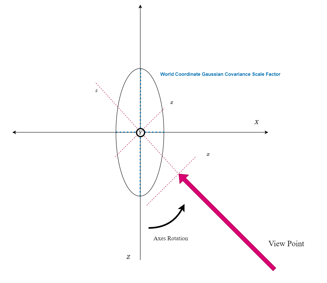 물체를 기술하는 세계좌표계에서의 가우시안을 Scale Factor로만 기술한다.